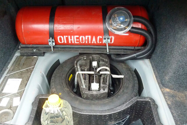 Кроме того, установка газового баллона увеличит массу автомобиля на 25–55 кг и займет место в багажнике или грузовом отсеке, а то и заменит запасное колесо.