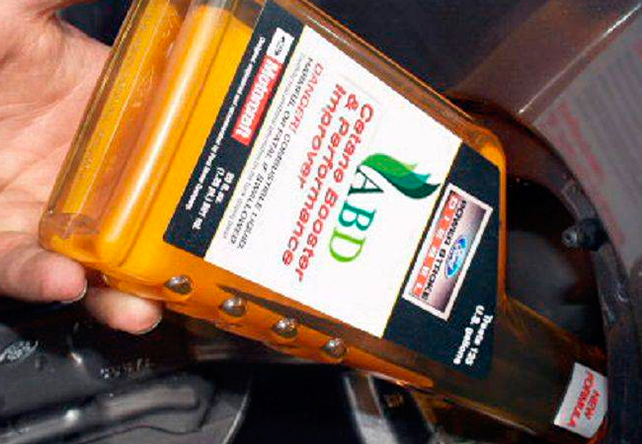 Ацетон — наиболее широко используемая и экономически выгодная присадка к топливу. Он гораздо дешевле традиционных присадок, а эффективность его действия сопоставима. Кроме того, эти присадки примерно на 90% состоят из ацетона или родственных ему химических веществ. Для ее включения необходимо 150 г на 40 л бензина (или 75 г на 20 л).