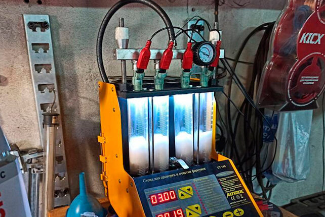 При этом способе очистки форсунок их необходимо разобрать, проверить на стенде, погрузить в ванну с моющим раствором, снова проверить и установить на место. Это более дорогостоящий и трудоемкий процесс, но он является визуальным и более эффективным способом очистки загрязненных элементов и даже полностью засорившейся форсунки.