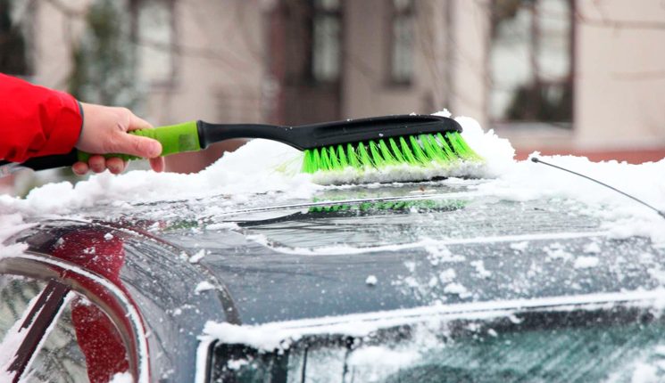 Чистим снег с крыши автомобиля